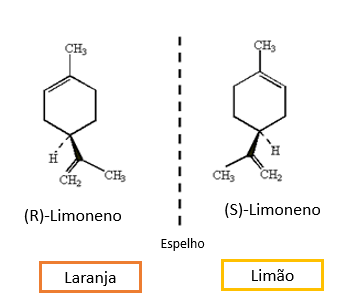 A forma R dá o cheiro a laranja enquanto forma S dá o cheiro a limão.